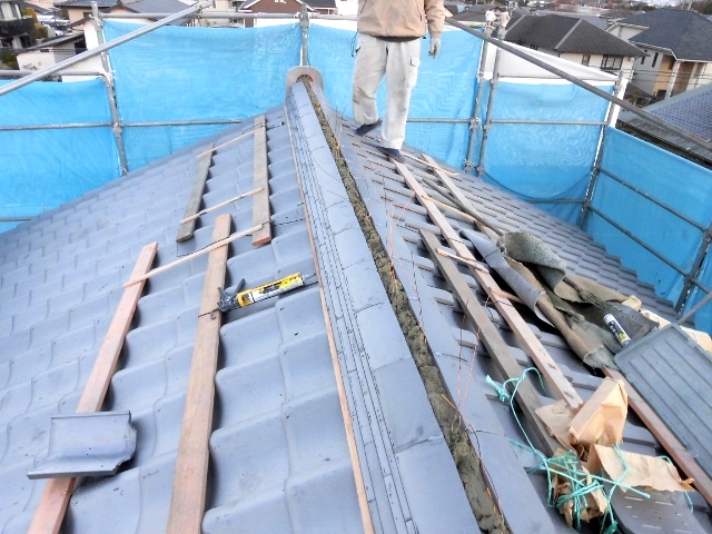 大屋根 地瓦 葺き、12、25
