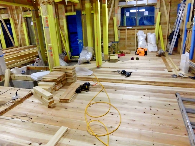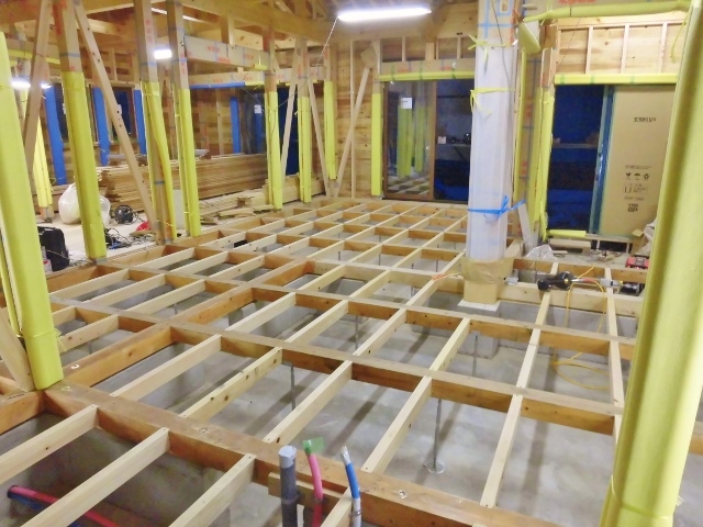 床組進む12、28 2014.12.28 先代の足あと 今日は現場はお休みです。 私は現場とお客様案内です 屋り現場は静かですが木の香り が一杯で気分が良く成り落ち着きます。 現場は連絡頂けばいつでも見学出来ます。