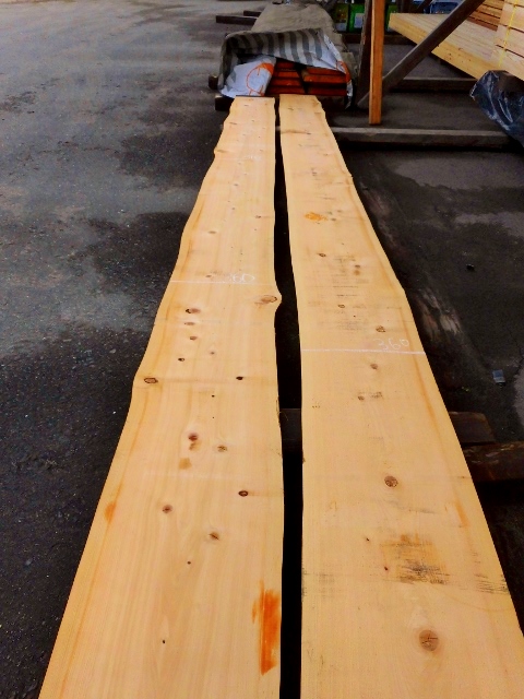 ヒノキ耳付き板1,31 2015.01.31 先代の足あと 今日は購入して5年以上経つヒノキ耳付き板を倉庫の奥から出して来ました。このヒノキ耳付き板今造作中のキッチンのカンターに使う予定です。やはり ヒノキ 無垢材良い香りしています。