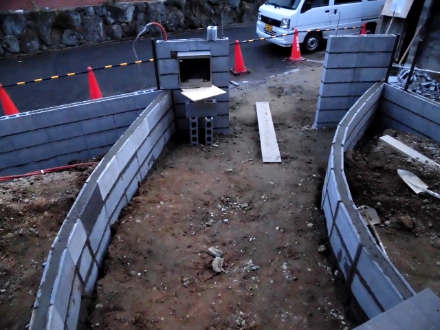 外溝工事。3,11 2015.03.12 先代の足あと 今日も雪の舞う寒い一日でした。この寒い中 外溝工事が本格的に始まりました。外廻りの姿が見えて来ると一段とお家の形が見えて来ました。良い感じに収まって来ています。