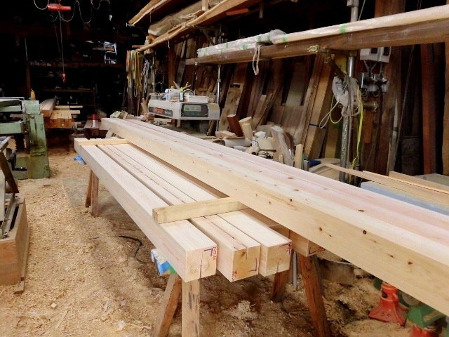 門木部材造り4,23 2015.04.23 先代の足あと 数日前より取り掛かっている門に使用する 天然乾燥材の木造り作業が本格的に動き出しました。 やはりヒノキ材工房一杯にヒノキの良い香りが充満して 気持が良い気分で作業しています。