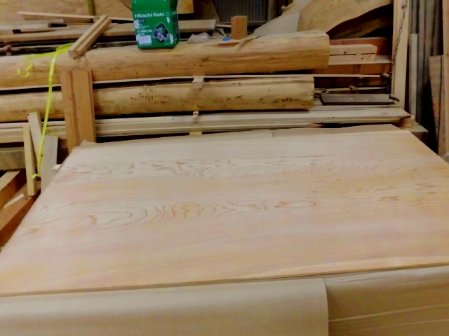 10年以上天然乾燥幅広杉板6,13 2015.06.13 先代の足あと 今日は良い天気に恵まれ門ん作業も順調に進み 屋根終いも終わり今日から腰廻りの造作作業に移って ゆきます、この杉板10年以上天然乾燥させた無垢材 やはり良い顔しています。取り付けが楽しみです。