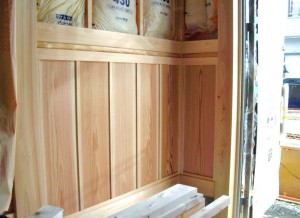 玄関腰板が完成しました。軟らかな感じに仕上がりました。