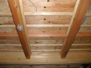 リビング天井下地ボードを張ると梁が浮き出てきます。さてどのように変わりますか。おたのしみに。
