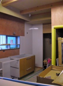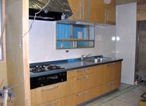 流し台の取り付けの最中です。
