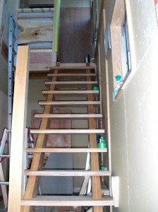 階段の段板が取り付けられました。さてどのように出来上がりますか。楽しみです