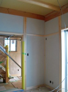 和室壁下塗りが出来ました。少し時間を置いて上塗りをします。どのような仕上がりになるか楽しみです。