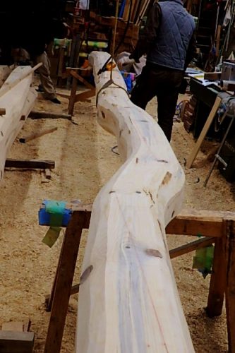 天然乾燥地松梁、 墨付け 1,30 2017.01.30 先代の足あと 今日は朝から雨の降るあいにくのお天気でした。 こんなお天気のでしたが、工房の中は熱く燃えて います。菅村棟梁、自ら伐採し数年天然乾燥 させた赤松本格的に墨付け作業に取り掛かりました #地松天然乾燥 #墨付け #手刻み
