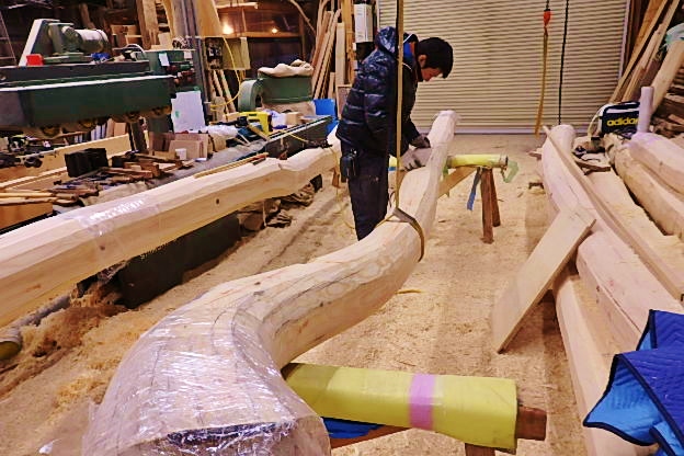 自然の造形、赤松梁、 刻み 2,24 2017.02.24 先代の足あと 今日も朝から良い天気に恵まれましたが 工房の中は火の気無し、とっても寒い一日でした。 この寒い中菅村棟梁良く曲がった地松梁の墨付け 刻みに精を出しています。楽しい仕事です。 #地松梁 #自然の恵み #自然の香り