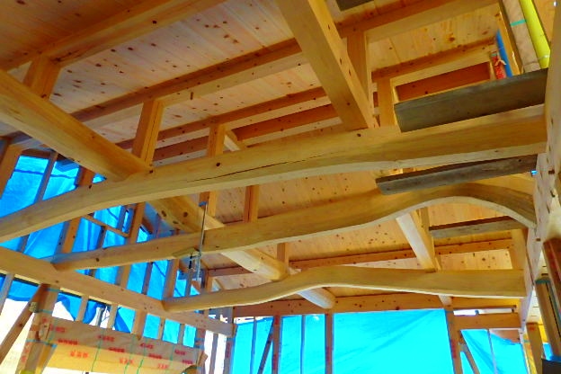 天然乾燥、アカマツ、梁 5,25 2017.05.25 先代の足あと 今日は朝から雨の降るお天気でした。 現場の造作作業も順調に進んで います。お天気は少し悪いですが 大工さんの気持ちは晴れの気持ちです。