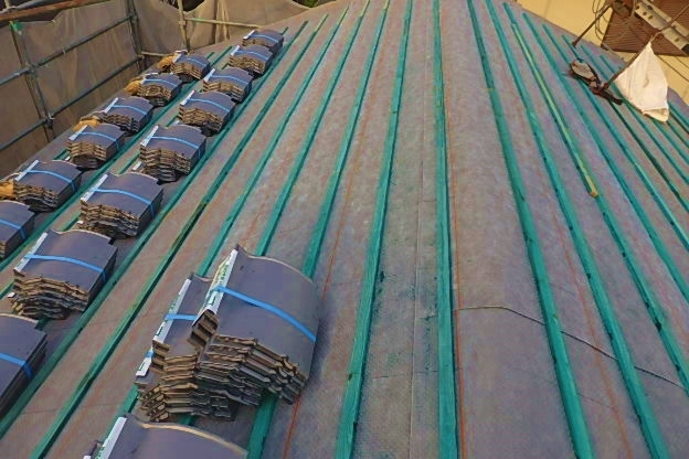 屋根、イブシ瓦葺き、初日、5,30