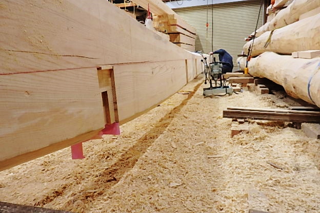天然乾燥、アカマツ梁、手刻み、11,15 2017.11.16 先代の足あと 天然乾燥させた地松の張り菅村棟梁完全手刻みの現場作業です。樹齢約百年余りのあかまつやはり。迫力満点良い顔しています。 #交野市、#枚方#寝屋川#自然素材#しぜんの香り#墨付け#手刻み