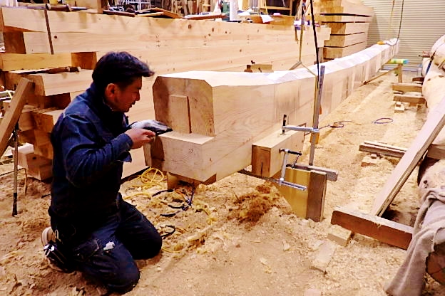 天然乾燥、地松梁、手刻み、11,17 2017.11.17 先代の足あと 今日はこの冬一番の冷え込みの一日でした。 この寒い中工房の中は自然の木の香り一杯 の中、菅村棟梁、地松梁の刻みに 取り組んでいます。地松迫力良い感じです。 #天然赤松梁#墨付け、#手刻み、#自然の香り