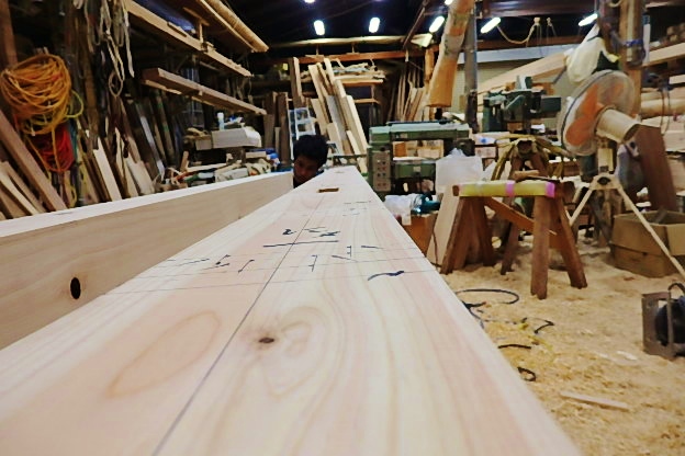 健康住宅、ヒノキ無垢材 11,23 2017.11.23 先代の足あと 今日の工房、天然ヒノキ材で建てるお家の 手刻み作業良い感じで順調に進んでいます。 #自然の香りがするお家#健康住宅#墨付け #手刻み #交野、枚方、寝屋川、生駒をエリアをお家創り