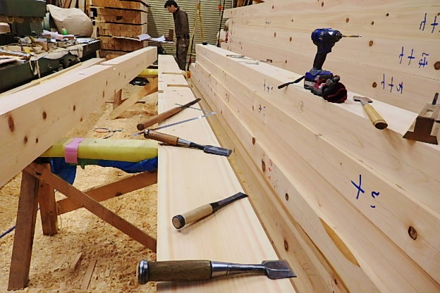 天然素材、健康住宅、 11,24 2017.11.24 先代の足あと 今日の工房寒い一日でした。 こんな火の気の無い工房の中で菅村棟梁今日も墨付け作業、手刻みに取り組んでいます。 #交野、枚方、寝屋川、生駒、エリアで健康住宅 #天然素材#木の香り#墨付け#手刻み