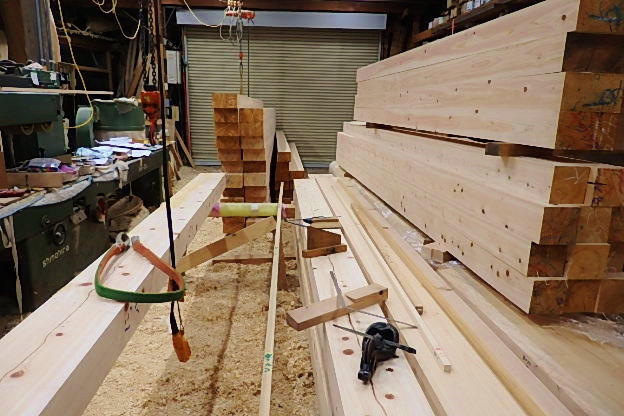 今日の工房ヒノキ無垢材を使っての健康住宅お家創り大工さん火の気無い工房で頑張ってくれています。感謝です。