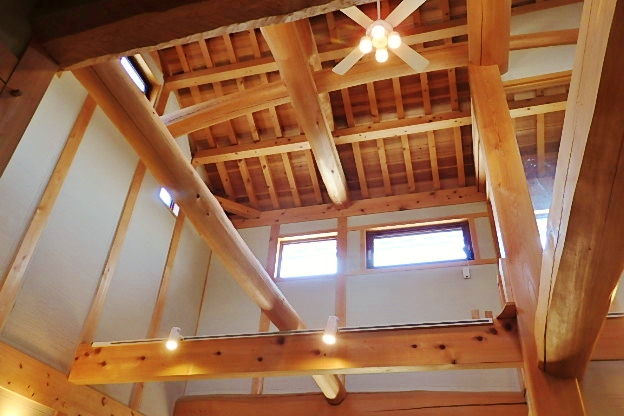 #天然ヒノキ、赤松、カエデ、梁、木造住宅