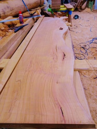 4,18日 菅村棟梁、工房にて造作材の加工です。