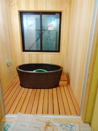 6,20天然素材で創るお家のお風呂の大工仕事の終了です、全ての素材が自然素材良い感じの空間に仕上がってきました。