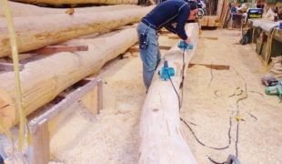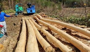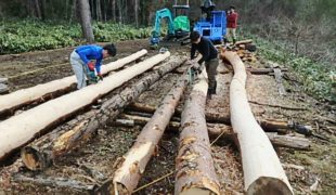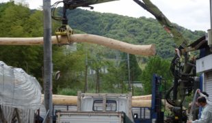 数ヶ月前に紅葉の始まった秋の山にスッタフ皆で紅葉の山に分け入り印を付けた赤松を伐採に行きます数年先お家創りの物語が今年も始まります新しい出会い、まだ見ぬお家創りの物語の始まりです。