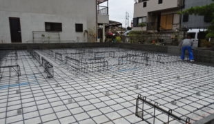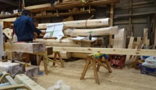 今日は基礎工事の鉄筋検査の日になっていました。検査も無事合格、その後仮枠組みの作業に移って行きます。工房では菅村棟梁墨付け作業に追われています。