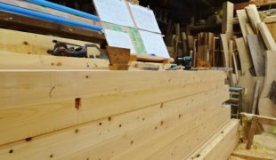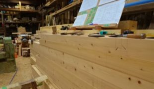 桧、土台の刻み作業順調に進んでいます、やはりお家が大きい為に土台の数も多くて簡単には終わらない数菅村棟梁、気を入れ取り掛かっています。