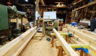 今日も火の気の無い工房、菅村棟梁、寒い工房で一人黙々と赤松、の刻み作業に精を出しています。