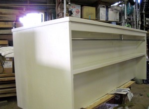 作業台も仕上がって来ました。後ろの形はこんな風に仕上がりました。