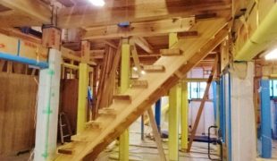 菅村棟梁、数日前より取り掛かっていたストリップ階段完了です。力強く安心感漂う良い階段に仕上がりました。