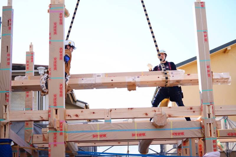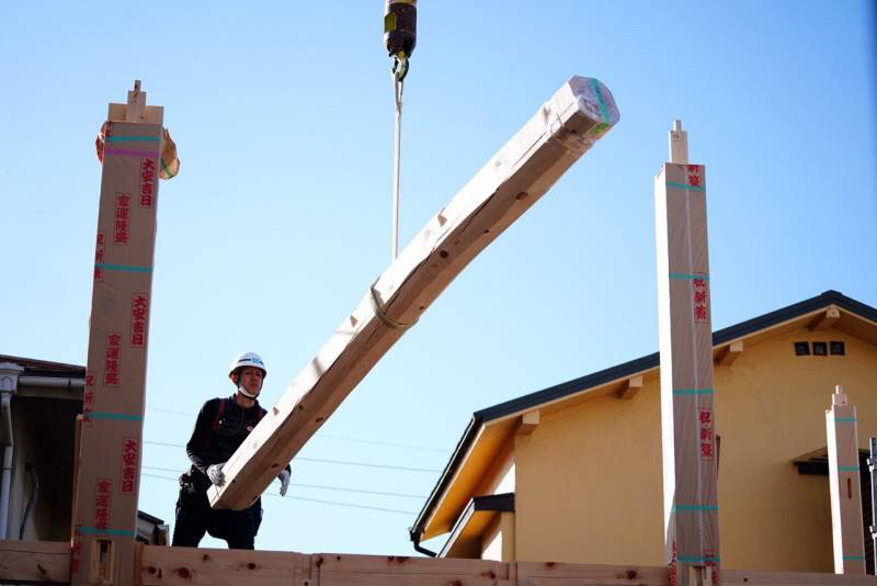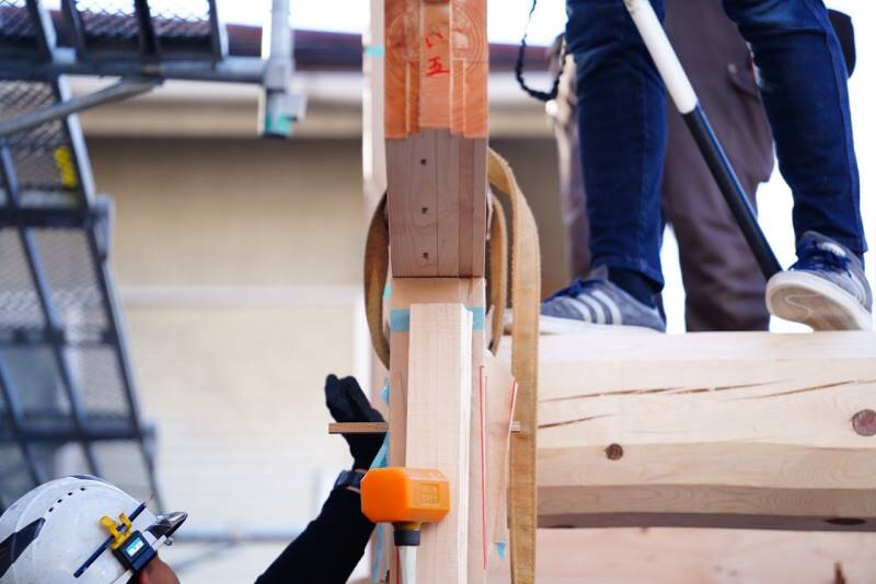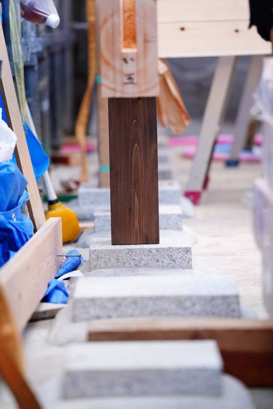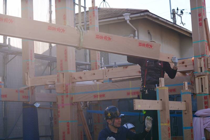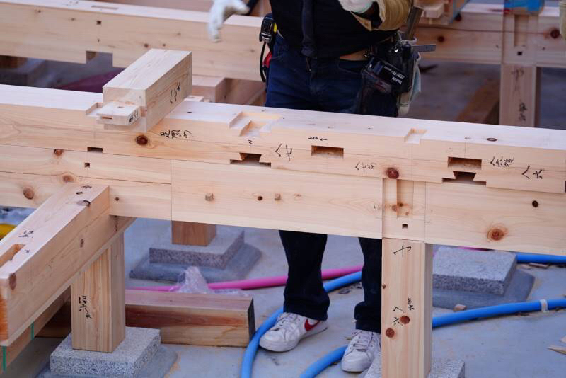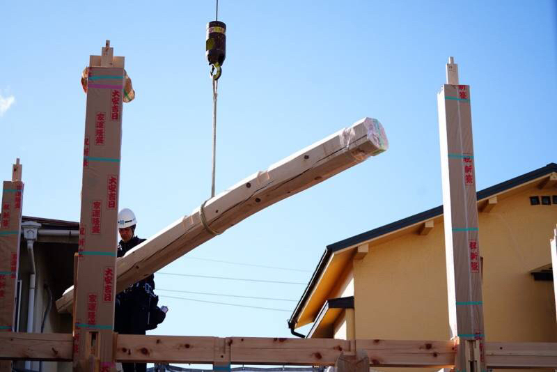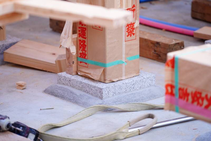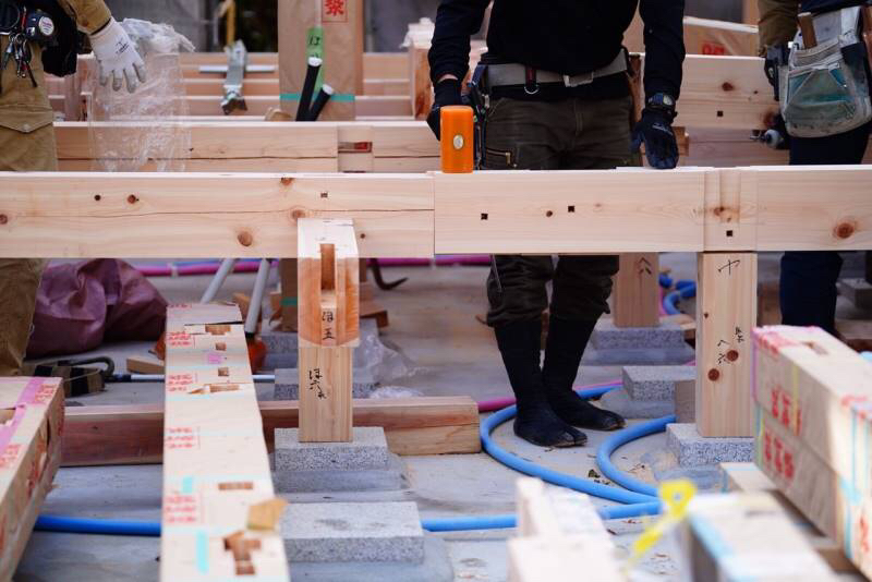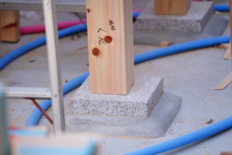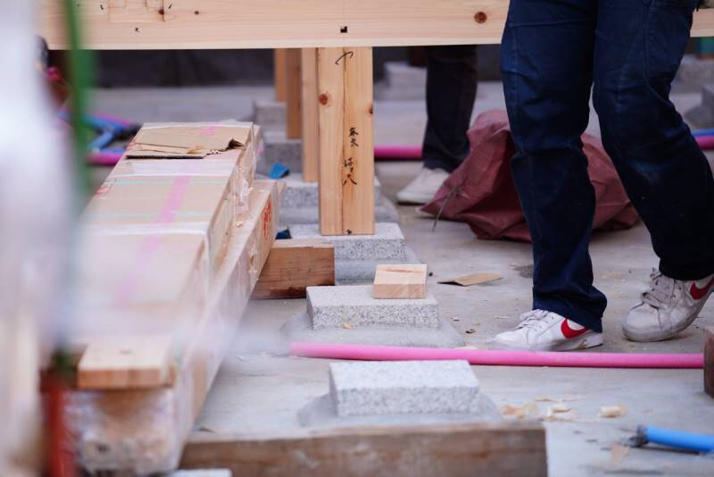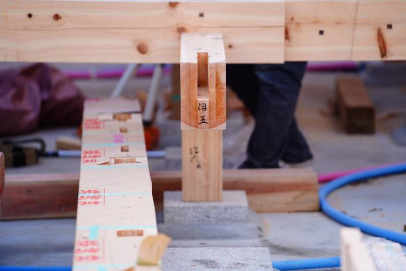 枚方市M・F邸新築工事が始まりました。伝統工法の石場建ての建て方の様子をご覧ください。