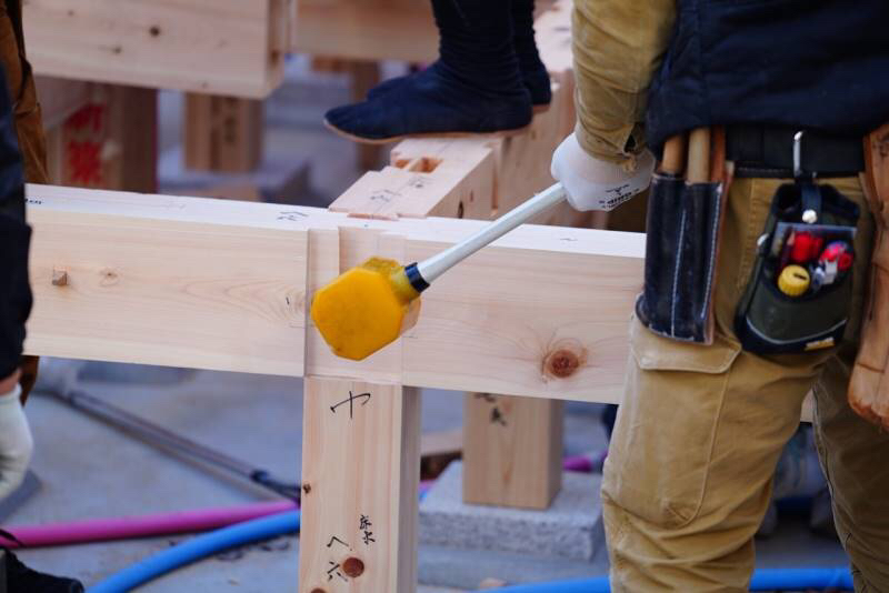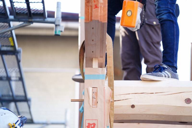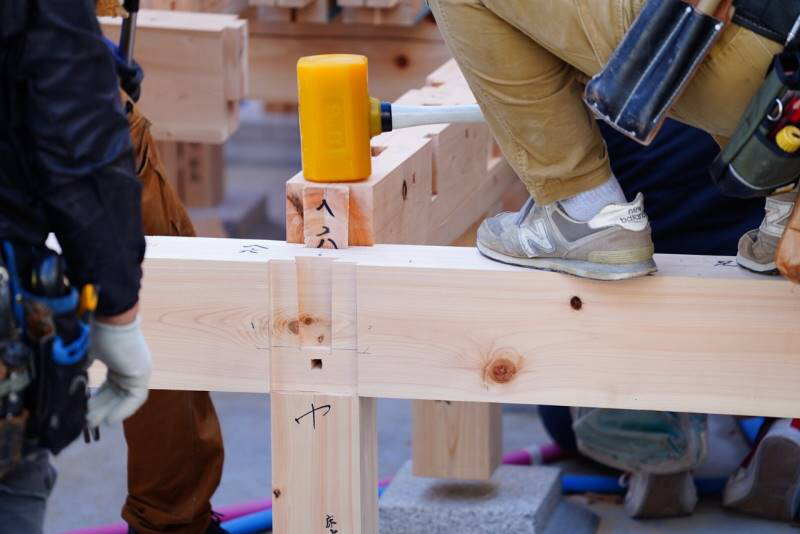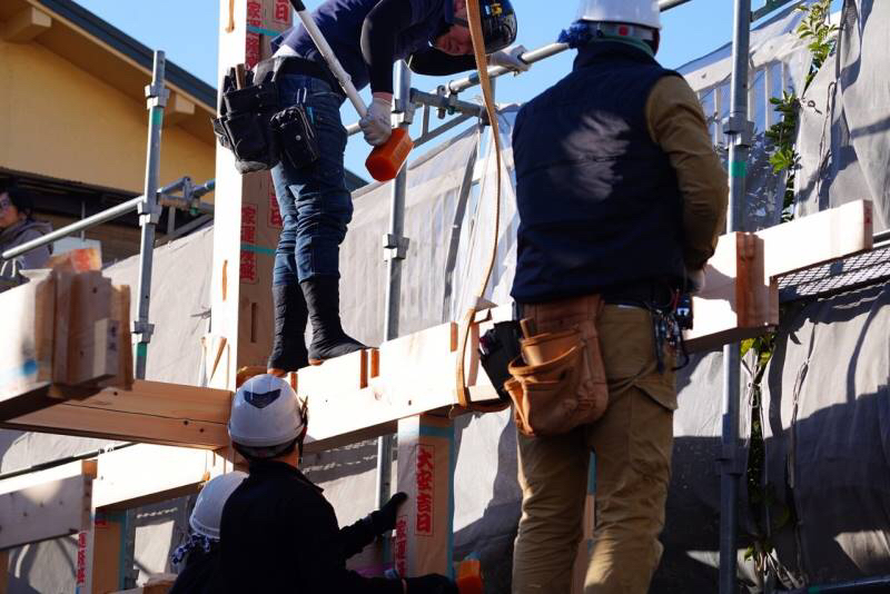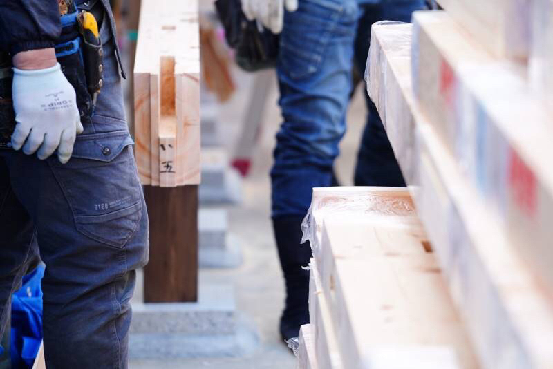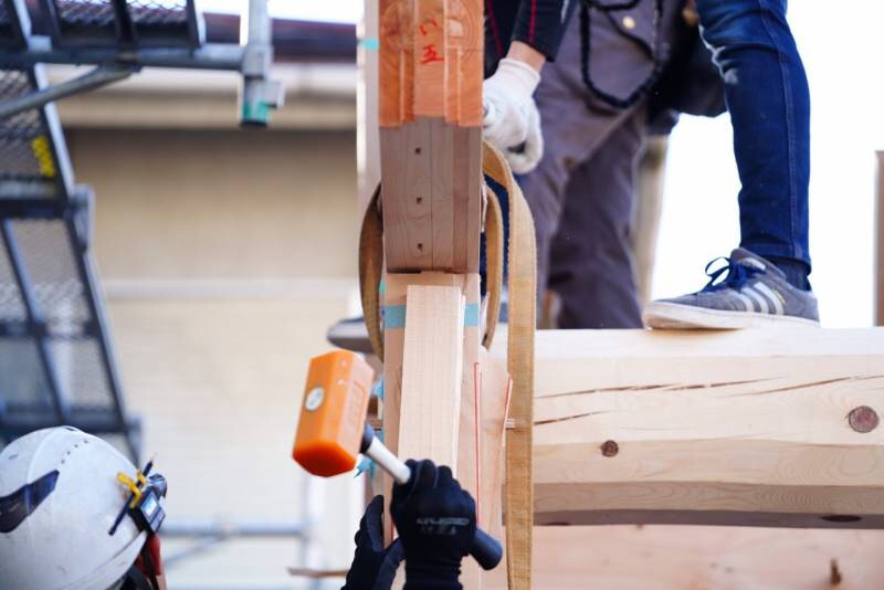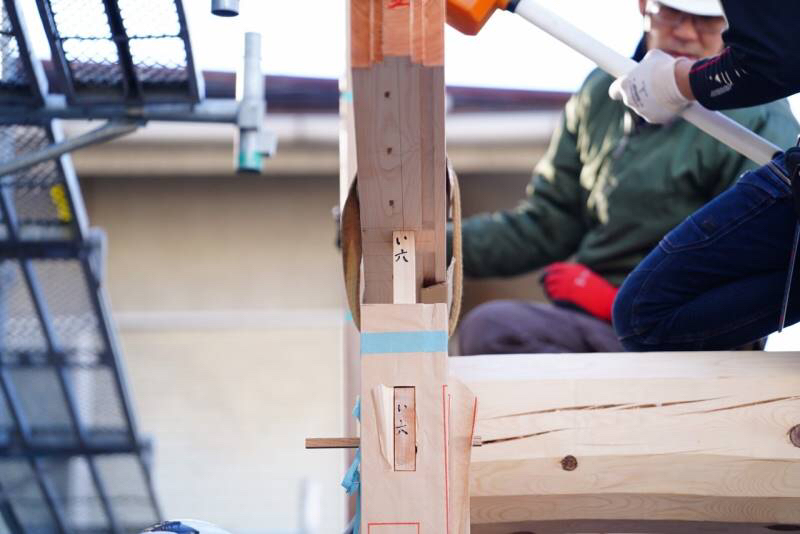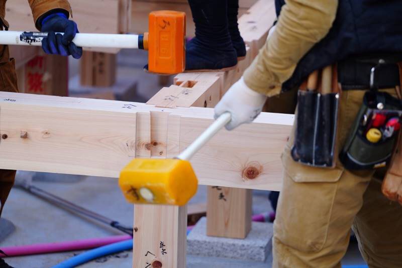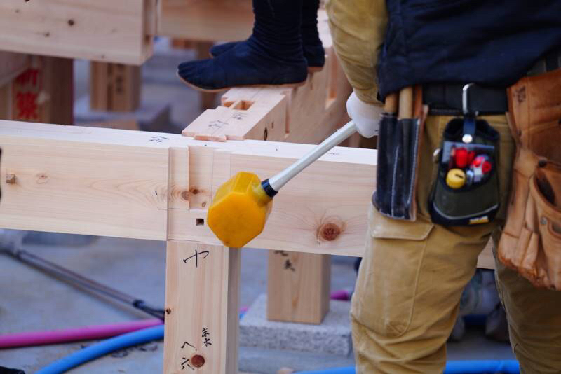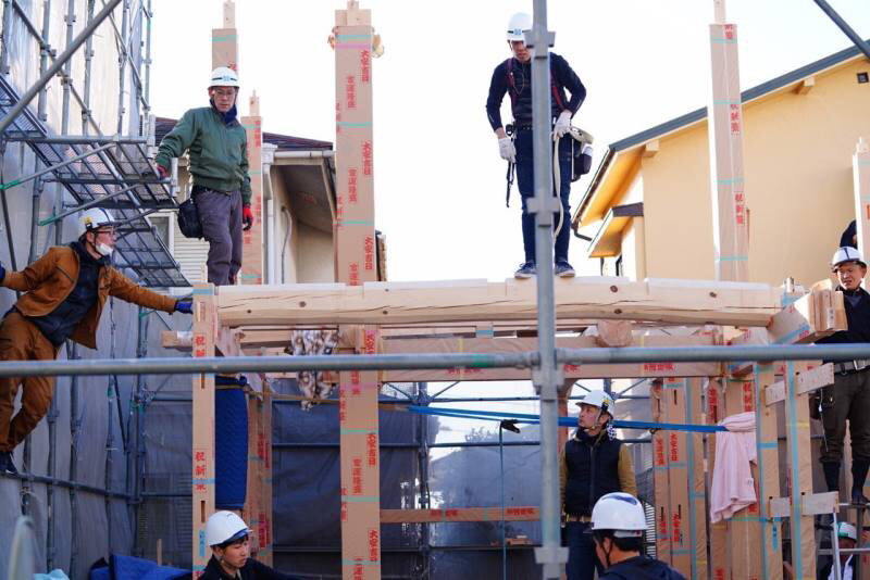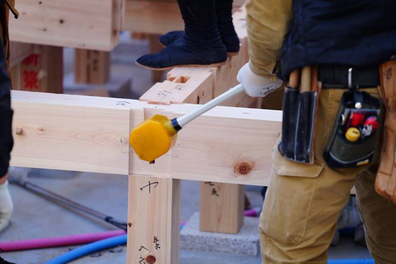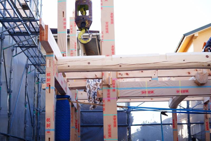 枚方市M・F邸新築工事が始まりました。伝統工法の石場建ての建て方の様子をご覧ください。