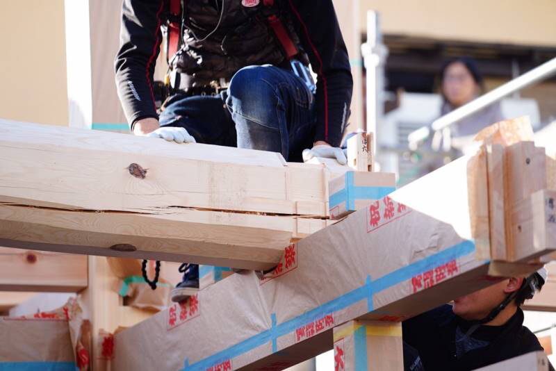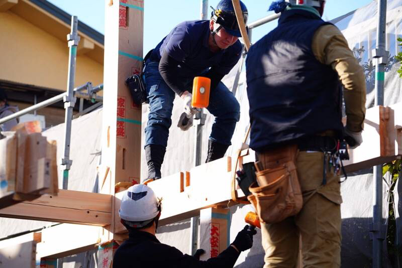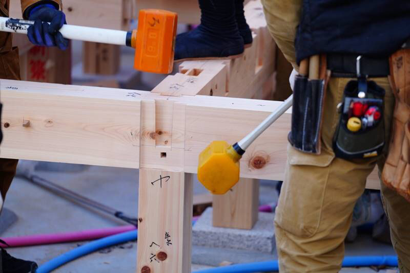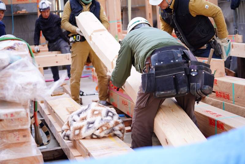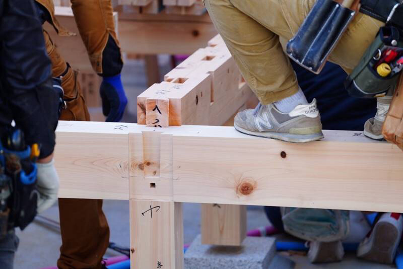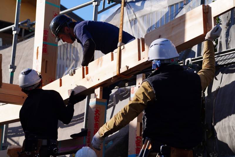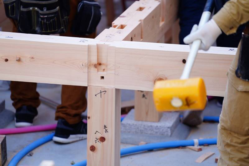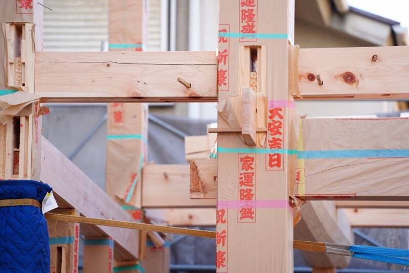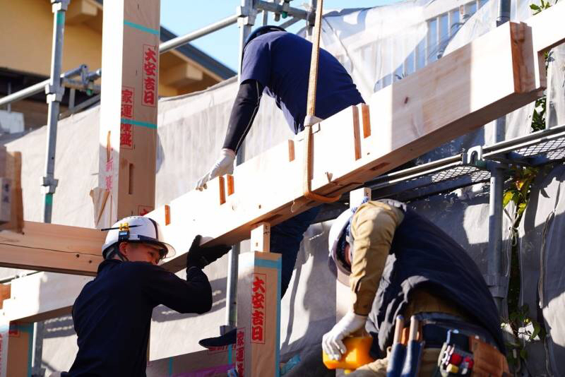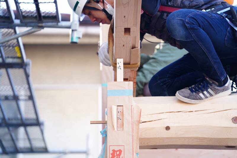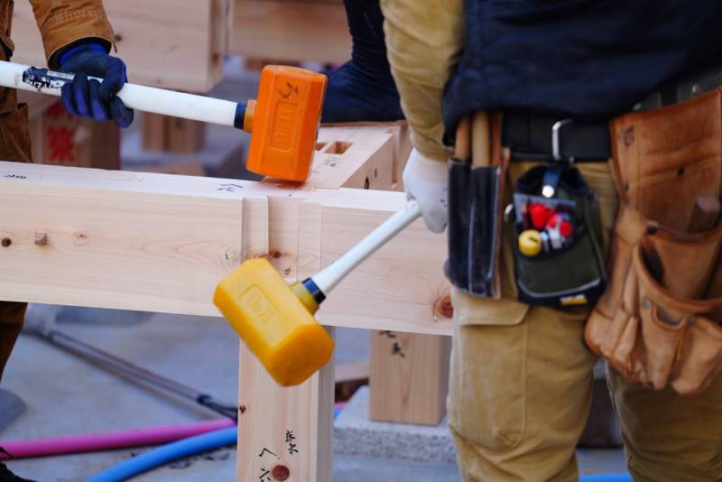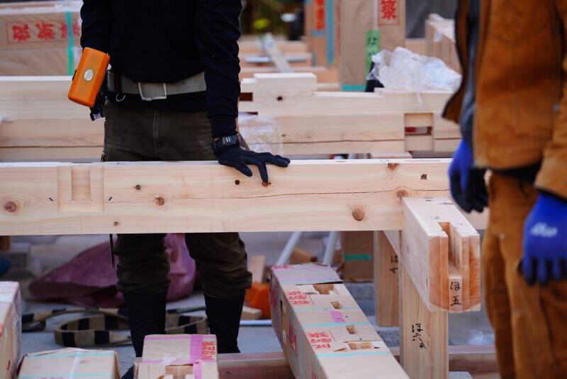 枚方市M・F邸新築工事が始まりました。伝統工法の石場建ての建て方の様子をご覧ください。