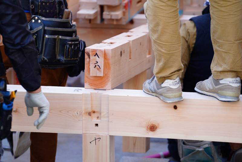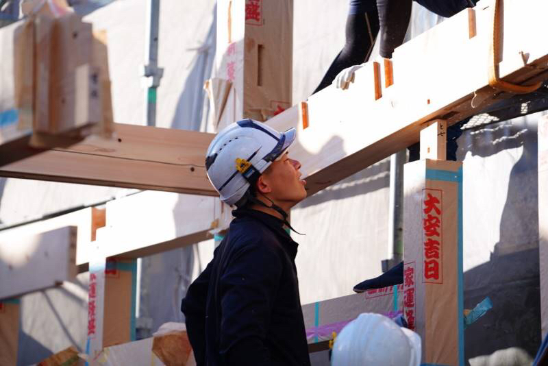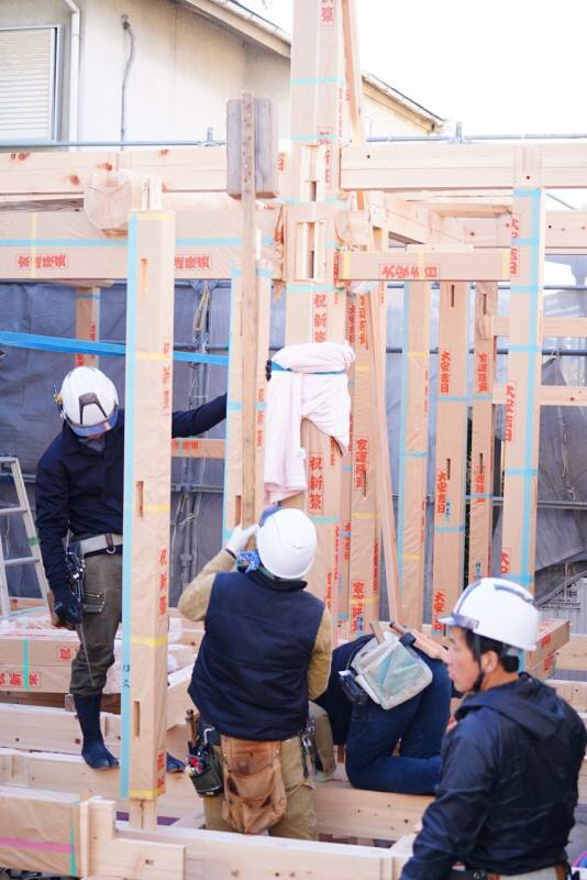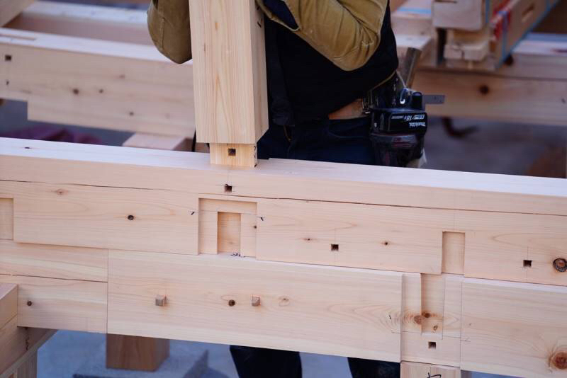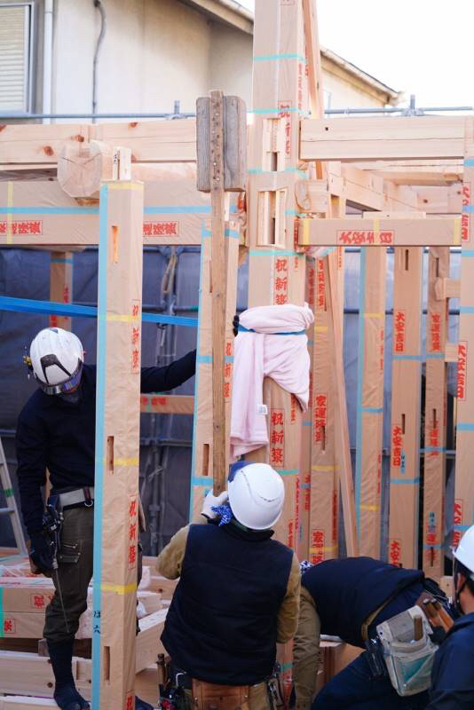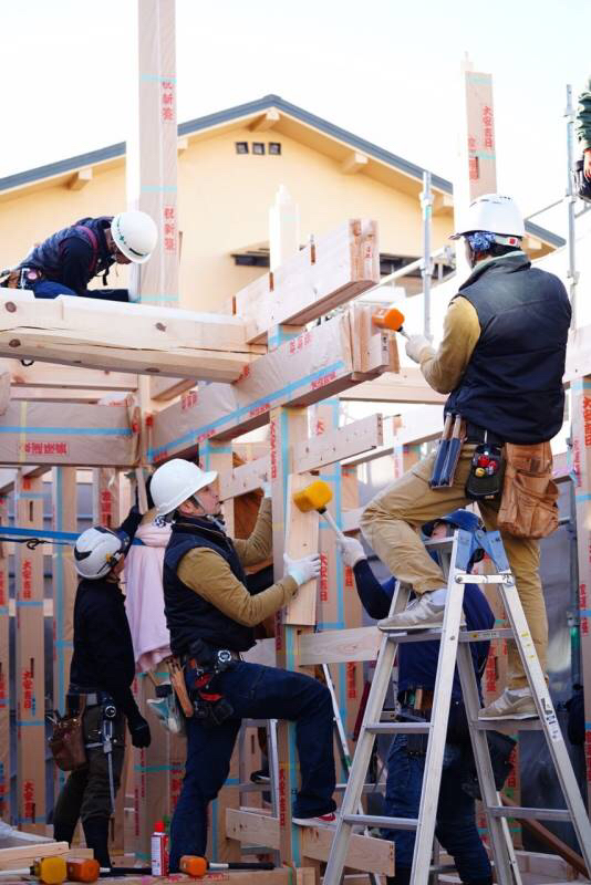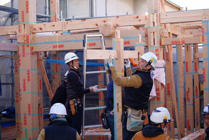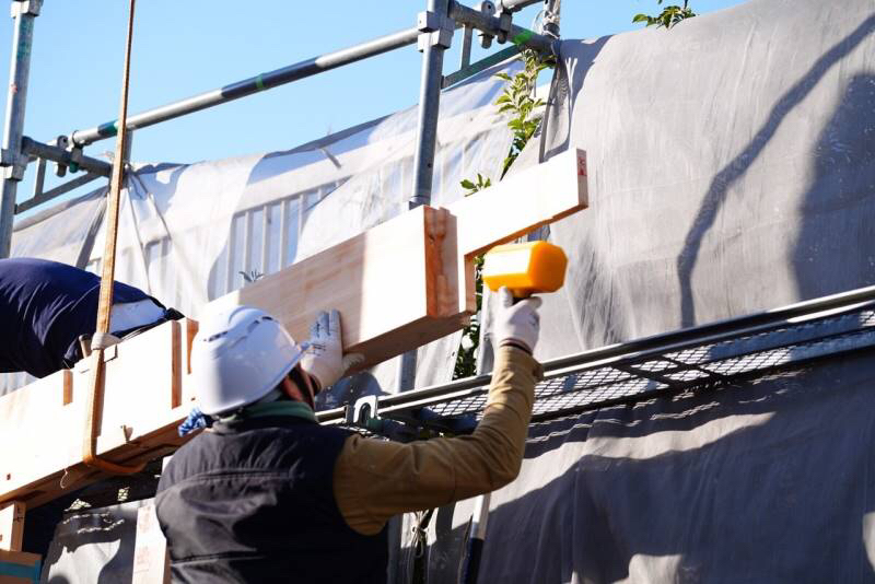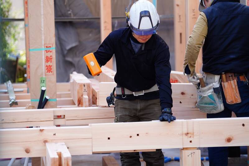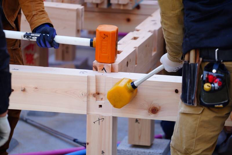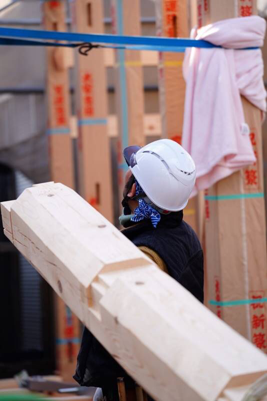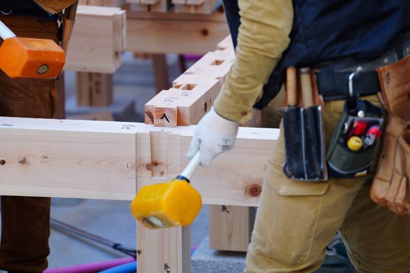 枚方市M・F邸新築工事が始まりました。伝統工法の石場建ての建て方の様子をご覧ください。
