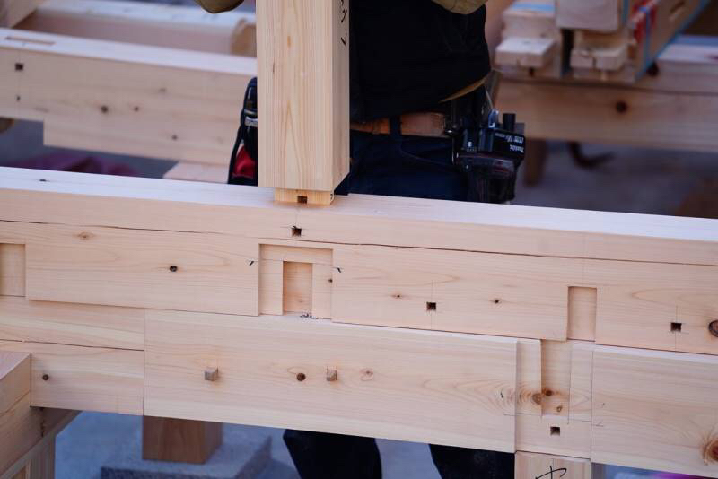 天然乾燥、自然素材、伝統工法で創る石場建て建て方初日2,17