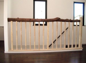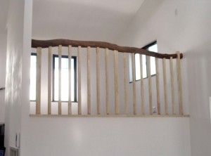 古材手摺取り付け完了 2010.11.03 先代の足あと 階段口と2階リビングの取り合い手摺が格好良く収まりました。 ロフトの手摺もこのような姿に収まりました。見学者の人びとも見た事ない手摺に大変好評でした。