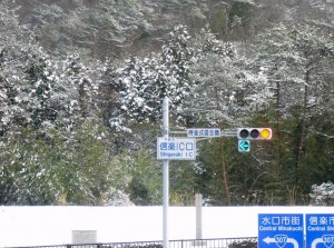 新名神信薬インターを降りると雪化粧でした。