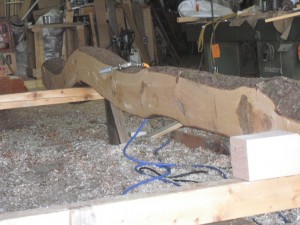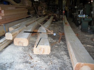 地松曲がりの梁皮ムキ