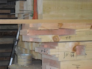 細工の終わった木材は積み上げて出荷を待ちます。