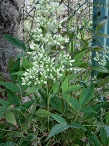 工房の鉢植えの南天が初めてこんなかわいい花を付けてくれました。
