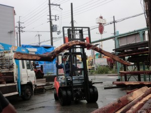 地松タイコ梁信州より届く 2011.06.12 先代の足あと 信州よりタキーさんが悪天候中地松の梁を届て頂きました。 こんな曲がった梁も届て頂きました。 さてどの場所に使うか思案中、むずかしーな。 でも楽しみ、楽しいーかな。