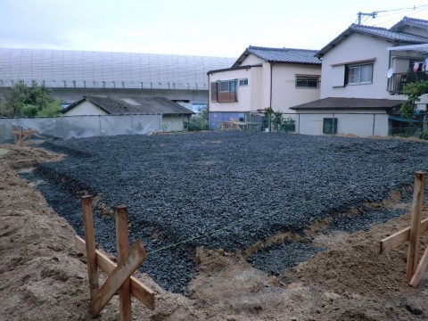 今日は朝から雨が降ったり止んだりのあいにくの天気でしたが採石敷きまで進みました。