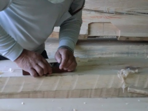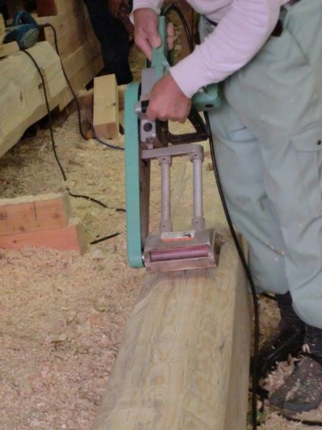 地松梁仕上げパート2 2011.10.12 先代の足あと 今日も大工さん地松梁手仕事でした。 地松梁仕上げの工程に移って来ました。今回の梁の仕上げは昔よく見られていた殴りにしています。 殴り仕上げ は味が有りますね。