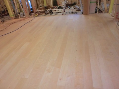 リビング床張り終了 2012.01.17 先代の足あと リビングの床張りが無事終了リビングの床張りは数日掛かりましたがやはり張り 終わると良いもんですね。自己満足かなー。 屋根瓦の工事も天候に恵まれて順調に進んであと数日で終わりそうです。 やはり天気に恵まれても屋根上は寒いですよー。