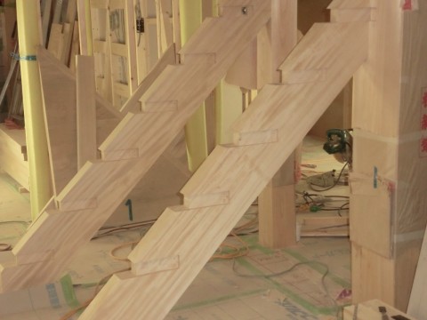 手刻み階段取り付け始まる