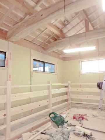 洗面大工仕事終了、吹き抜け手摺半ば、 2012.02.24 先代の足あと 洗面大工仕事終了この後の左官さんの仕事シラスの塗り壁に移って行きます。 吹き抜け部の手摺順調に進んでいます。 天然乾燥した檜無垢材やはり良い香りして良い感じです。