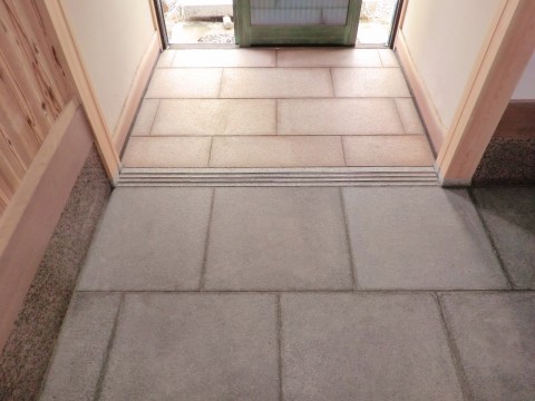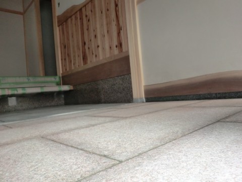 玄関石張り工事の最後の工程仕事