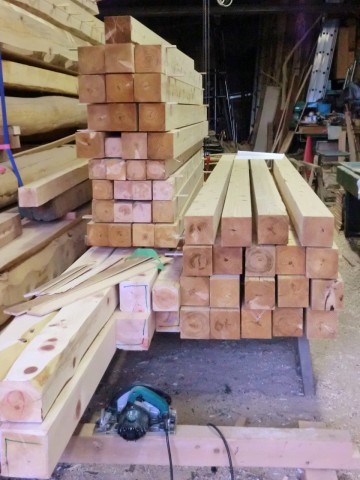 新築土台搬入 2012.07.21 先代の足あと 今日は激しい雨の中前田木材さんより檜4寸角材が搬入されました。 いよいよ墨着けが始まります。墨が付けが終わった材は順次手刻み で加工されて行きます。見学されたい方はいつでもご覧できます。 工房の場所大阪府交野市寺3丁目23-10です。