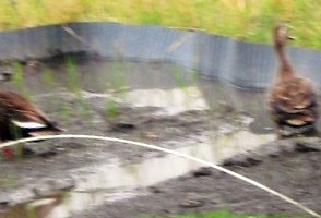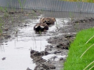 現場の近状げ鴨の遊ぶ姿に出会う。