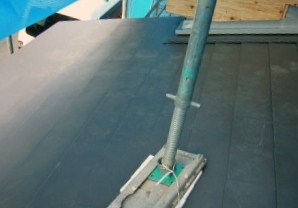 玄関の屋根がようやく仕上がりました。素材は酸性雨に強いガルバニウム鋼板です。