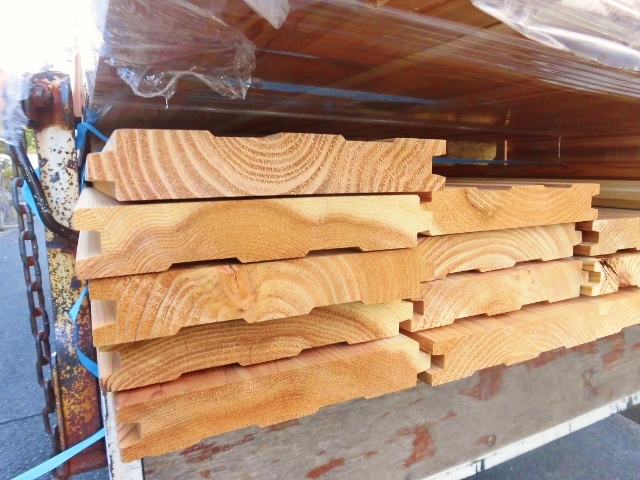 朝一番に前田木材さんより屋根野地に使用する厚さ30ミリの